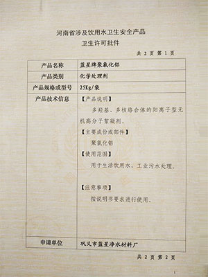 聚合氯化鋁,俗稱凈水劑,又名聚氯化鋁,簡稱聚鋁,英文名字PAC。和堿式氯化鋁,噴霧干燥聚合氯化鋁同屬于相關(guān)類凈水藥劑。產(chǎn)品經(jīng)河南省衛(wèi)生廳檢驗,完全符合《生活飲用水衛(wèi)生監(jiān)督管理辦法》的規(guī)定,并頒發(fā)有《河南省國產(chǎn)涉及飲用水衛(wèi)生安全產(chǎn)品衛(wèi)生許可批件》。