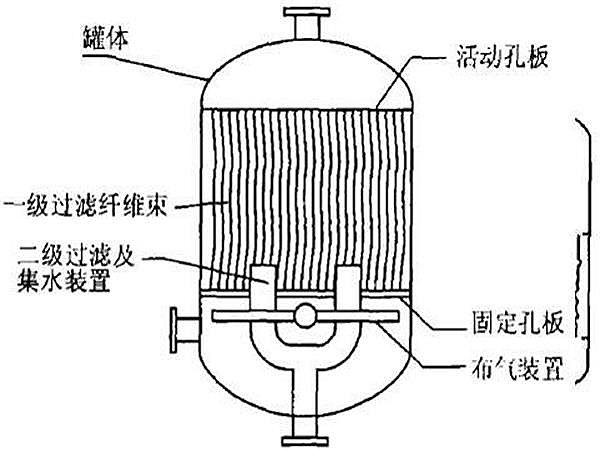 纖維束過濾器有碳素鋼和金屬材質,過濾器機器設備由固定不動多孔結構板、主題活動多孔結構板、纖維束濾料、曝氣設備等構成。主題活動多孔結構板可左右挪動,過濾時,在水力發電功效下,濾料順流水方位間隙由大慢慢縮小,化學纖維相對密度增大,產生理想化的過濾方面,其過濾全過程具有豎向深層次過濾,又有橫著深層次過濾,合理地提升了過濾精密度和過濾速率;清理時,使纖維束做到松散情況,另外,選用氣水合洗的方式 ,在汽泡散聚和水力發電清洗全過程中,纖維束處在持續顫動情況,在水力發電和升高汽泡的功效下,反清洗濾料進而其再造。
